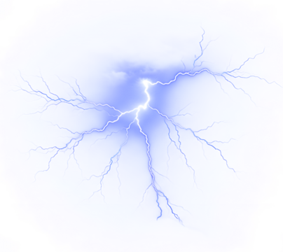 Electric blue lightning bolts illuminate the storm with light and energy. Sparks flash danger while thunder roars across the sky. Perfect PNG overlay for dramatic effects.