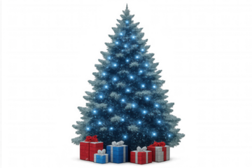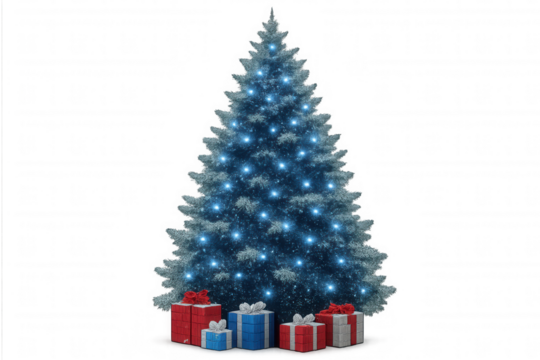Digital blue light christmas tree on transparent background