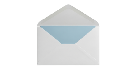 White envelope with pastel blue lining isolated PNG with Transparent Background