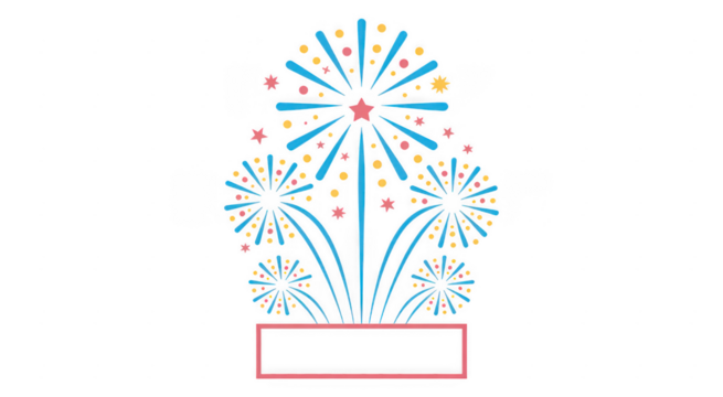 Colorful Fireworks Display with Blue Lines and Pink Stars isolated on a transparent background