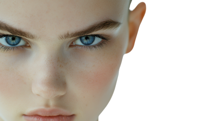 a close up portrait of a beautiful woman with blue eyes on a transparent background, PNG image, PNG file, Generative art.