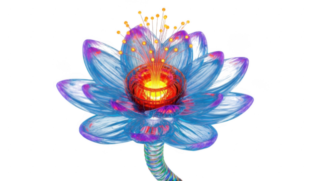 Vibrant blue lotus flower with colorful spiral stem isolated on transparent background