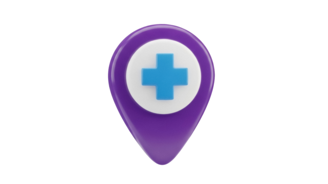Medical location pin PNG isolated on transparent background, healthcare service pointer for maps and navigation apps