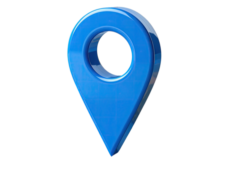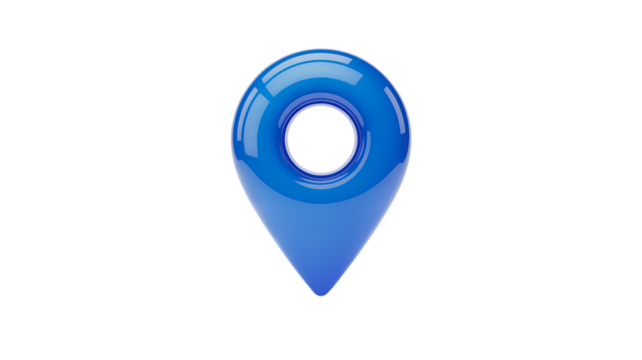 Blue map pin icon representing location, address, finding places, and direction. Transparent background