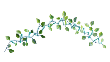 Decorative green vine arrangement on a white background showcasing vibrant leaves intertwined with blue material