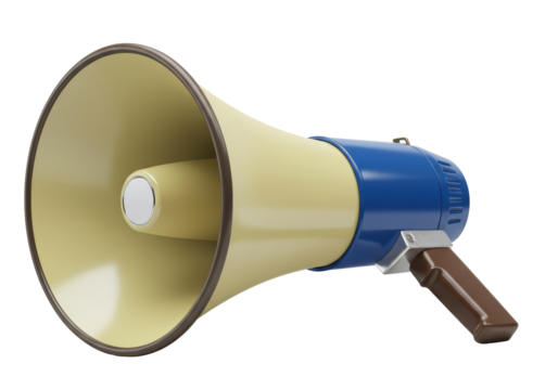 Isolated Yellow and Blue Megaphone for Amplifying Sound Loudly on Plain Setting