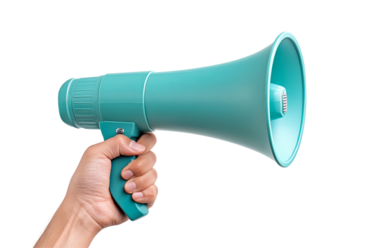 High-quality image of a blue megaphone  isolated on transparent background., perfect for marketing and communication concepts.