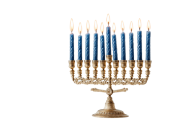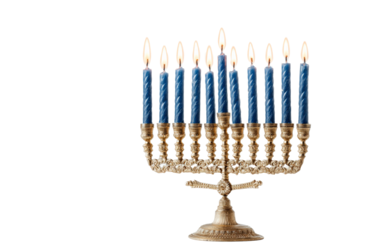 Blue hanukkiah symbolizing hanukkah celebration and jewish holiday tradition, isolated on transparent background