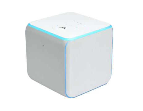 White cube speaker with blue LED accent