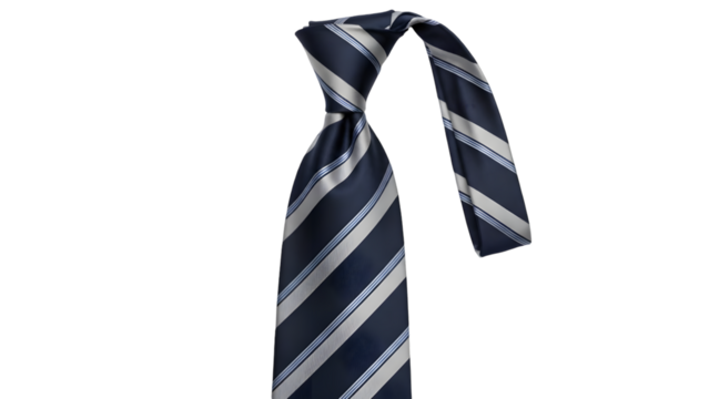 Rolled necktie with gold and blue stripes elegant style on transparent background
