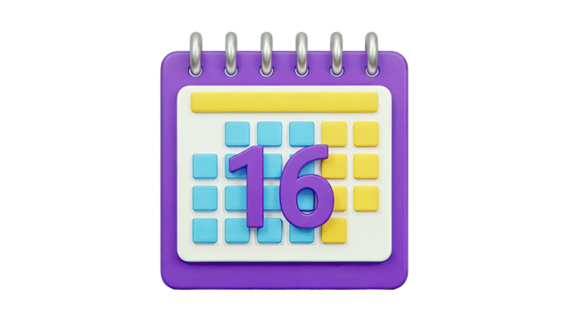 3D Cartoon Calendar Icon with Number 16