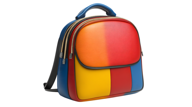 Colorful Backpack with Vibrant Orange Red Yellow and Blue Panels  Ideal for Fashion Travel