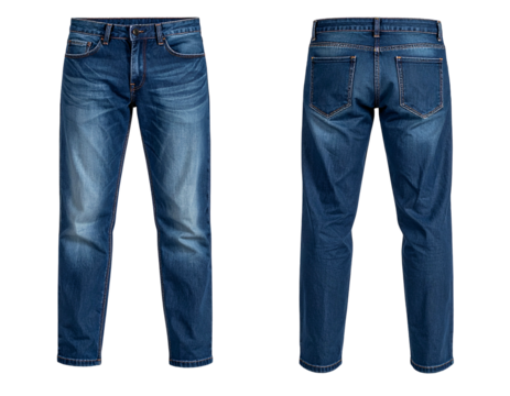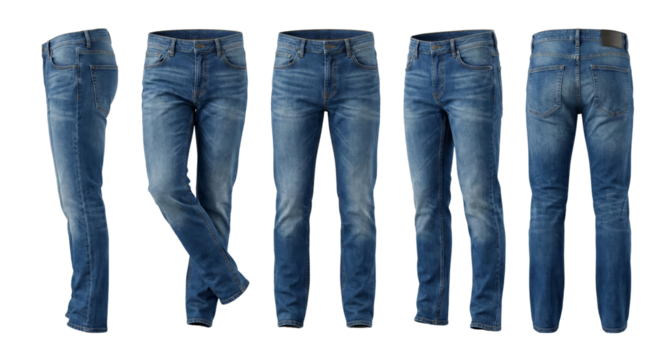 Studio shot of blue jeans on transparent background, showcasing their design and texture, perfect for fashion or retail projects