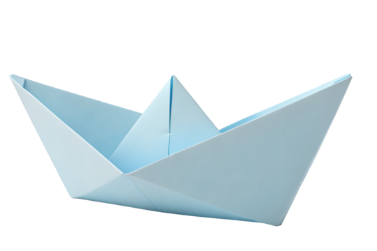 Origami paper boat illustrating creativity on transparent background