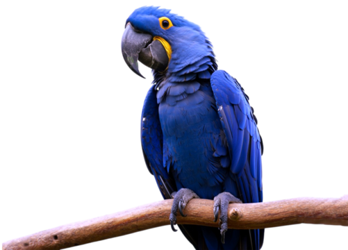 Hyacinth macaw perched on a branch blue parrot large parrot