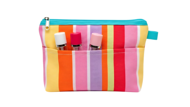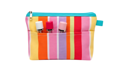 Colorful striped pouch with blue zipper isolated on transparent background