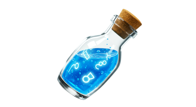 Magic potion in a glass bottle with cork lid and transparent background, creating a mystical and enchanting atmosphere