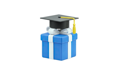Illustration of a blue gift box with a silver bow isolated on transparent background