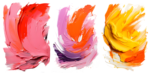 Vibrant palette abstract rough colorful multicolored art painting texture, pallet knife paint on transparent background.