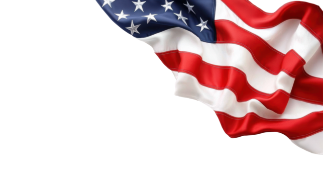 United States flag waving gently in the wind cutout isolated on transparent bg, png