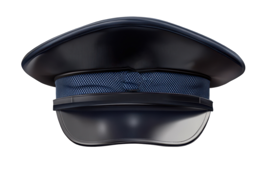 Police uniform hat without badge or logo displayed against a transparent background, highlighting its details and design