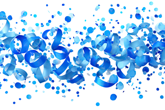 Various Blue Ribbons Displayed in Different Curved and Straight Shapes, isolated on transparent background