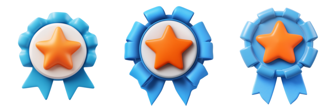 Transparent achievement medal with star and ribbon on blue background