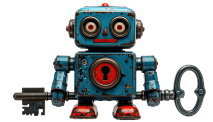 Friendly blue robot waving hand isolated PNG, futuristic technology character on transparent background for digital design and artificial intelligence concepts
