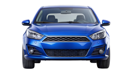 Sleek blue sports car isolated PNG on transparent background, modern automotive design for transportation and high-performance vehicle concepts