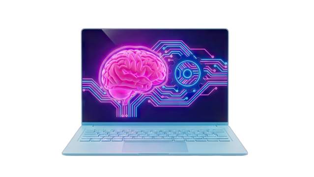 Artificial intelligence brain showing glowing neurons and neural activity, symbolizing data processing and abstract thought on transparent background