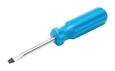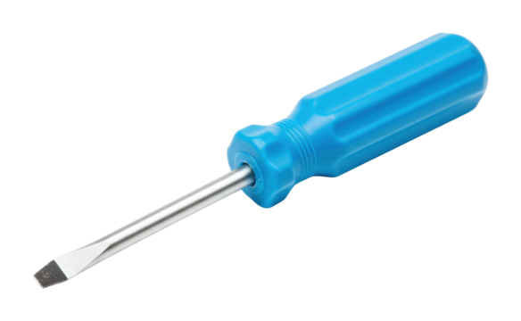 Using a blue screwdriver for home repairs workshop tool indoor diy concept. Cut out png