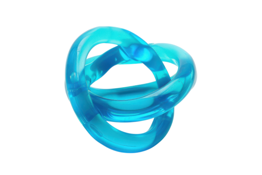 A stunning intertwined blue sculpture reflecting light, embodying creativity and elegance in a minimalist design