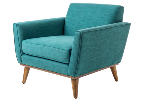 A chic, velvet accent chair in a deep green, red and blue  color isolated on transparent background