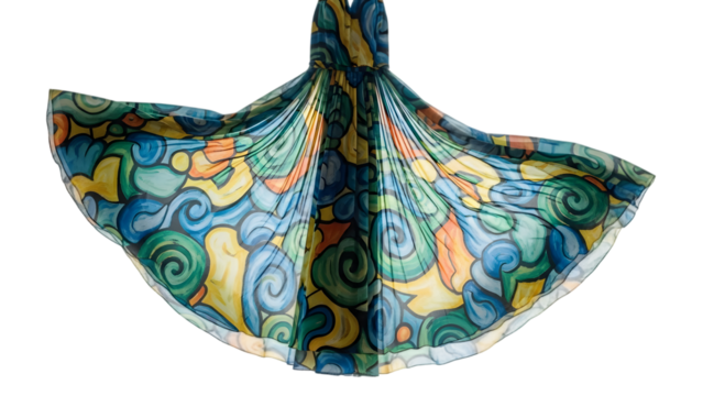 Vibrant hanging fabric with swirling patterns isolated on transparent background