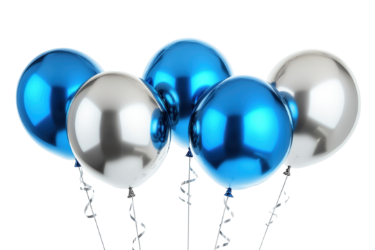 Shiny blue and silver balloons floating festive celebration party decorations perfect for on transparent background
