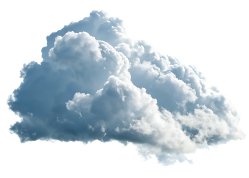 A large, dense, and fluffy white cumulus cloud against a clear blue sky isolated on transparent background