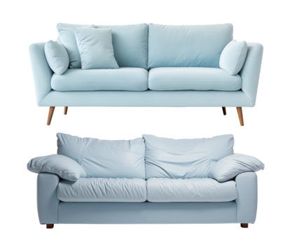Soft blue sofas on a transparent background, PNG