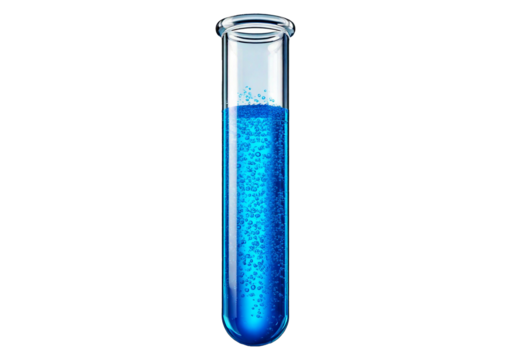Test tube containing Blue liquid, commonly used in scientific or medical visuals isolated on transparent or white background