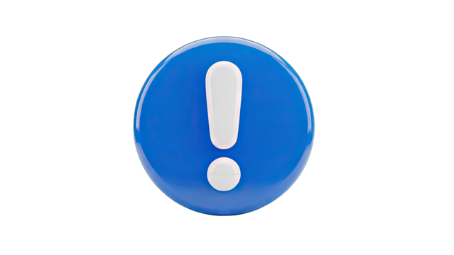 Glossy Blue Sphere With White Exclamation Mark Symbol Inside Transparent Background 3D Rendering Caution Warning Symbol Alert Notification Attention Icon