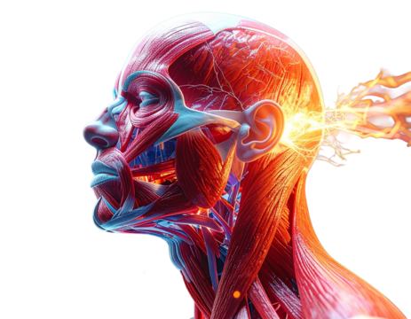 Metallic spinal column with glowing intervertebral discs on transparent background, perfect for medical and scientific projects