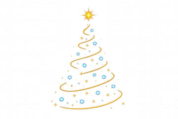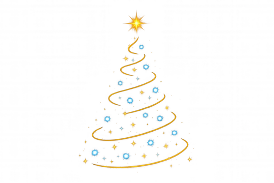 Abstract christmas tree shaping glowing blue and gold lights with sparkling star, holiday celebration concept
