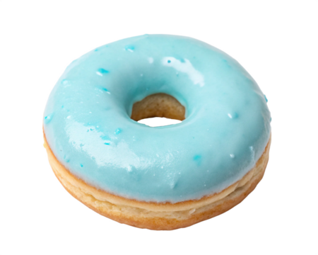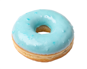 four christmas tree cookies decorated with green and blue icing and sprinkles on a transparent background, festive holiday baking