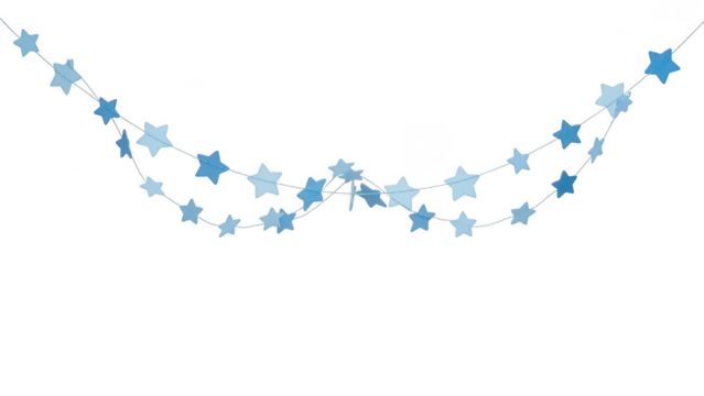 Blue star garland with light and dark shades hanging in a festive curve isolated on transparent background
