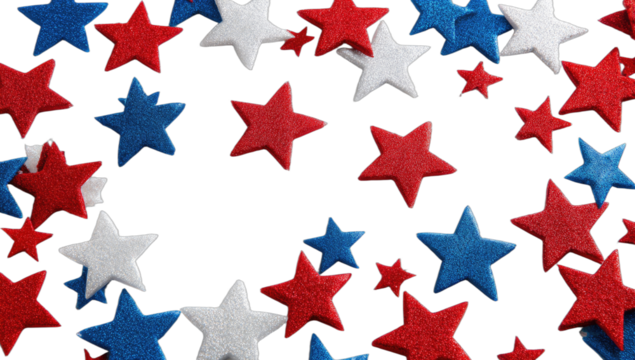 A cluster of red, white, and blue stars, perfect for patriotic themes and celebrations, isolated on transparent background