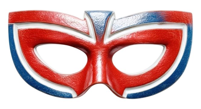 Red, White, and Blue Superhero Mask, Patriotic Eye Cover, Fictional Costume Accessory, Isolated on Transparent and White Background
