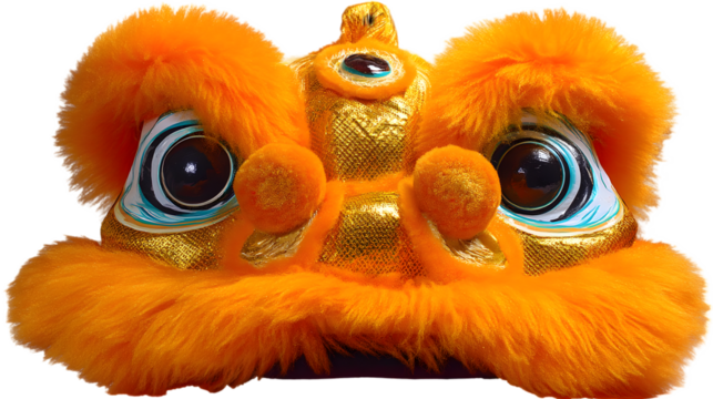 A Lion Dance Costume Head Showcases Colorful Chinese Heritage Performance Icon Isolated on White PNG