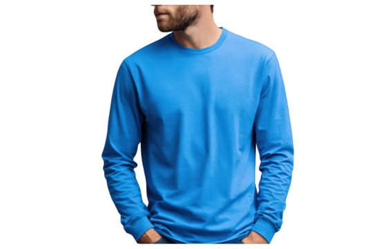 Man in blue shirt thinking transparent background