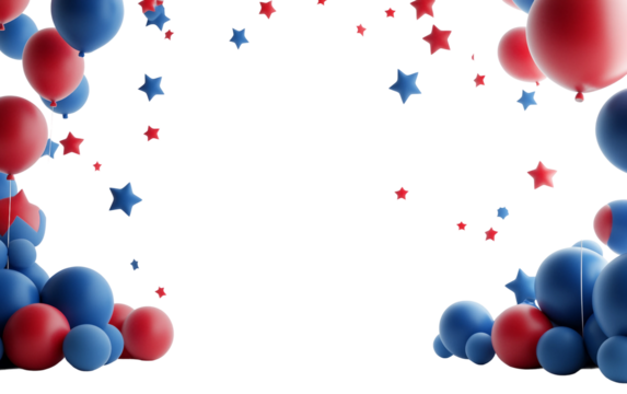 Artistic 3D digital banner celebrating Independence Day with vibrant red white and blue theme isolated on transparent background PNG