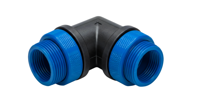 Plastic Fitting with Blue Threads – Isolated on Transparent Background