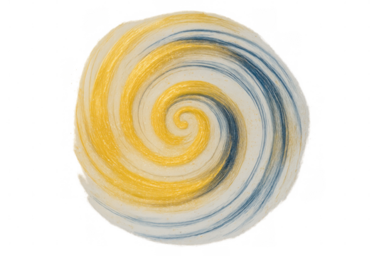 Intertwining golden and blue threads create a mesmerizing vortex, forming a hypnotic swirl against a transparent background
